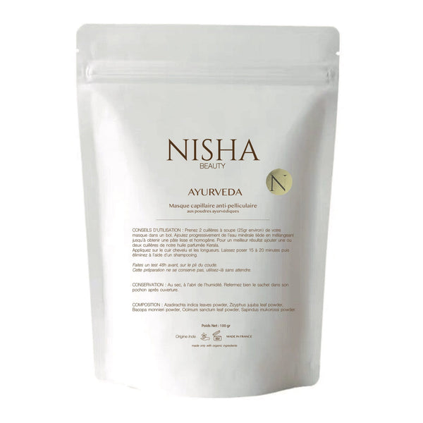 Cette poudre pour masque capillaire anti pelliculaire Ayurvéda traite les pellicules. Elle soulage les demangeaisons et apaise le cuir chevelu. La poudre capillaire ayurveda Anti pellicullaire est composé de : neem, sidr, brahmi, tulsi, et reetha.