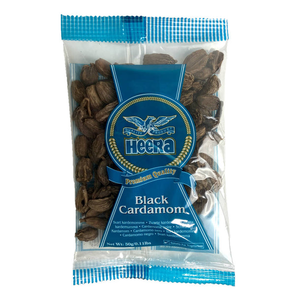Cardamome noire, capsules, sachet de 50 g, Heera ou TRS