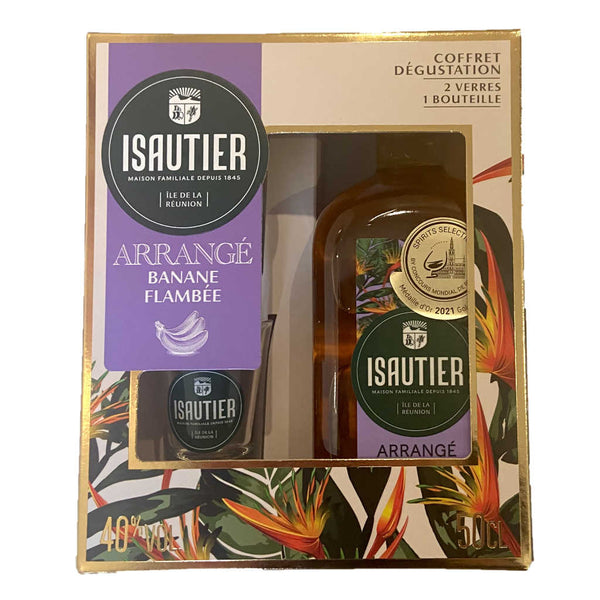 Offrez cette bouteille de rhum arrangé Banane Flambée Isautier, pour faire plaisir aux amateurs de rhum et aux amoureux de l’île de la Réunion. Ce rhum arrangé Banane Flambée Isautier vous invite sous le soleil et la chaleur de la Réunion. On ne peut voyager cet hiver, alors offrez-vous un peu de chaleur grâce à ce rhum arrangé Banane Flambée Isautier en provenance de la distillerie Isautier, basée depuis 1845 sur l'île de la Réunion, dans l'océan Indien.